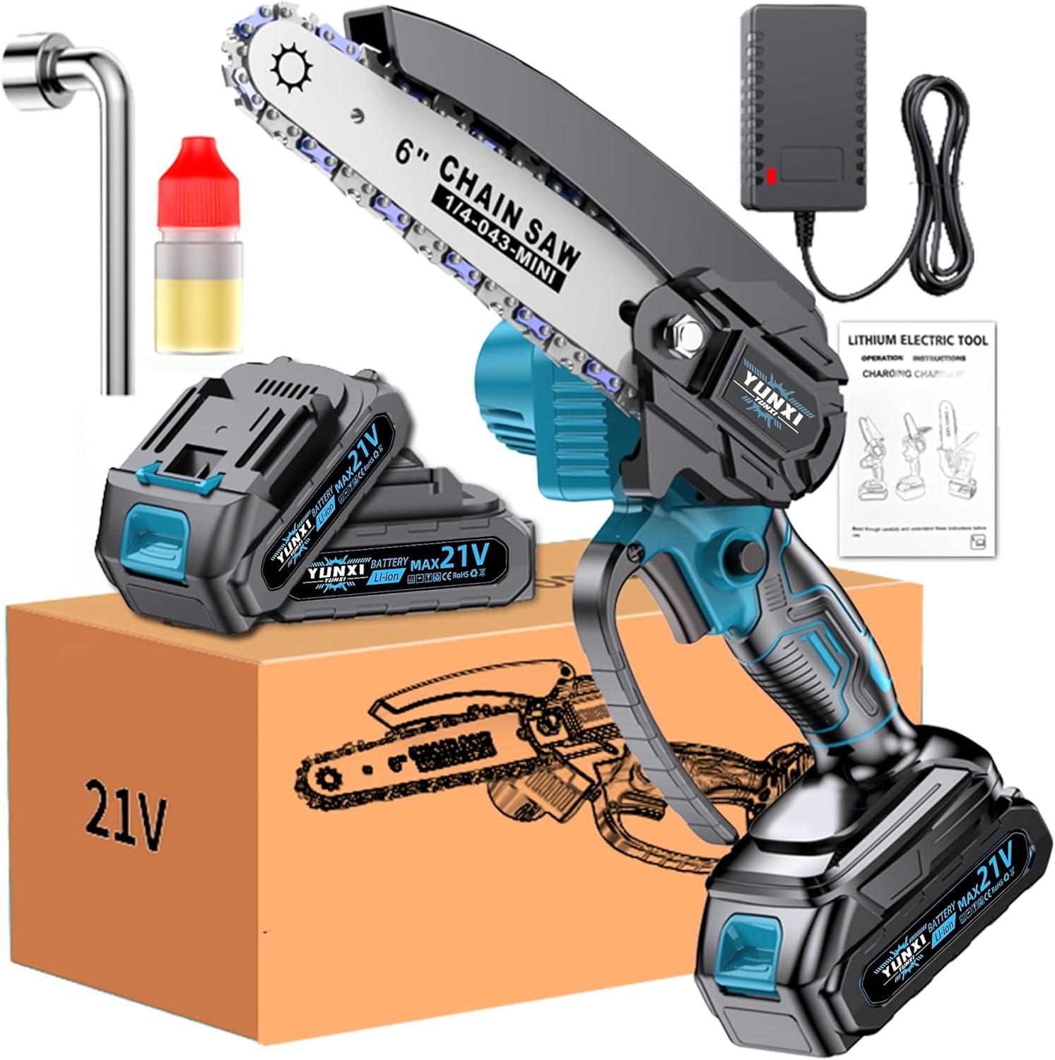 Mini Chainsaw Cordless, Lightweight & Portable Handheld Electric Tree Cutter with Splash Guard,Security Lock, optional Rechargeable Battery, and Safe Trimming for Quick Cutting